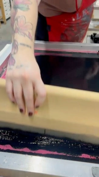 printed using waterbased black ink on a huge 27"x27" cotton tea towel, with hanging loop on the back.Â