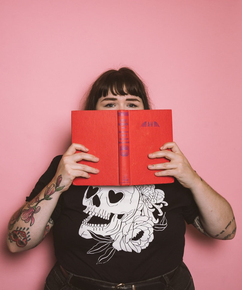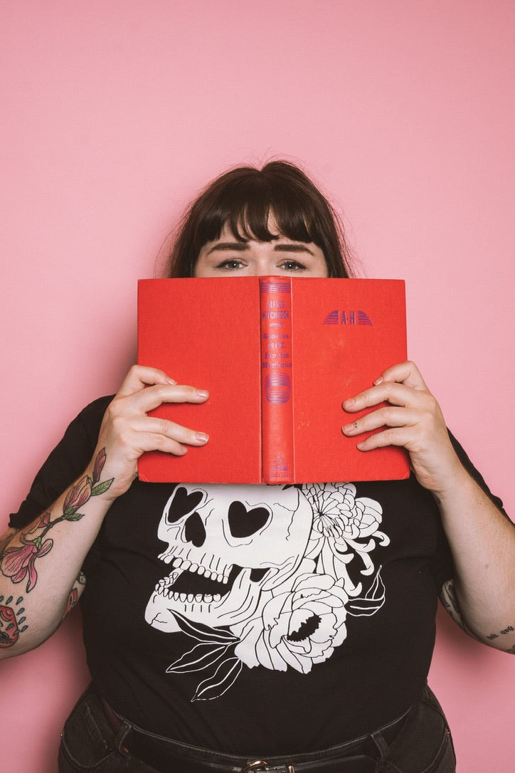 A heart eyed skull surrounded with flowers feels like the most soft flirt thing possible for a halloween tee. so naturally, now it exists.